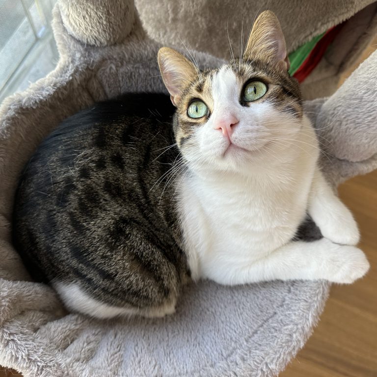 Trotz allem ist er gesund, fit, verspielt und voller Liebe; er ist einfach nur eine „Kontrollkatze“ geworden.