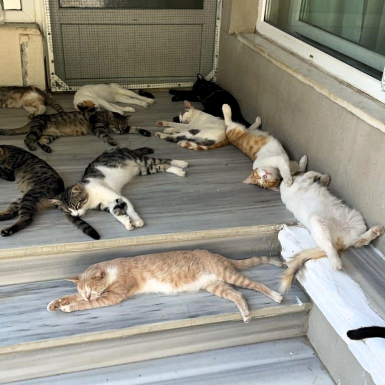 Diese Katzen gehören zu den vielen Tieren, um die sich Ayse kümmert. Ayse ist Tierschützerin in Kırklareli in der Türkei. In ihrem Garten versorgt sie über 50 Katzen, organisiert Kastrationen in einer regulären Tierklinik und lässt auch schwer erkrankte Tiere behandeln: darunter Katzen mit Nierenversagen, Panleukopenie und FIP. In ihrem Bezirk gibt es keine:n städtische:n Tierärzt:in, daher muss Ayse diese Hilfe selbst koordinieren.